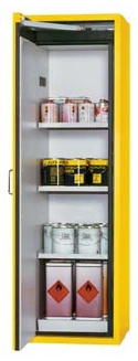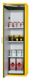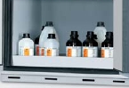 Bezpečnostní skříně / Skříně na hořlaviny / Bezpečnostní skříň s křídlovými dveřmi s požární odolností 90min (levé dveře)_3x police, 1x spodní záchytná vana, ocelový poplastovaný plech