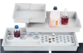 - PE záchytná vsuvka – účinně chrání police před agresivními látkami