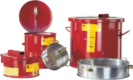 - na bocích pevná madla pro bezpečný transport nádoby - součástky a zařízení mohou být ponořeny ve vnitřním vyjímatelném koši a jednoduše přemístěny k dalšímu následnému oplachu - samouzavírací bezpečnostní víko (v případě požáru se samočinně uzavře díky zabudované tepelné pojistce – tavitelný spoj) - vysoká stabilita celého zařízení zajišťuje bezpečné provedení celého procesu (koše nejsou součátí nádoby a objednávají se jako samostatná položka)