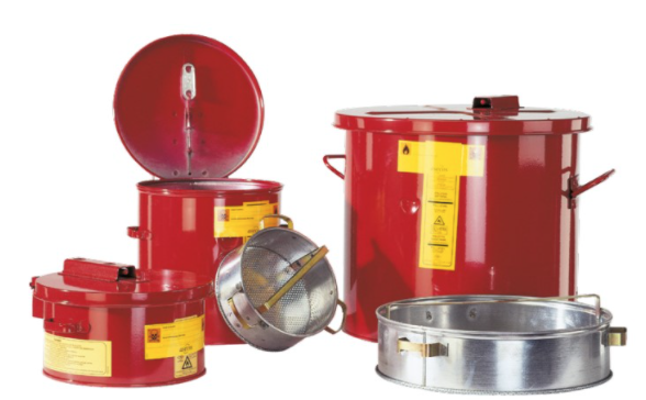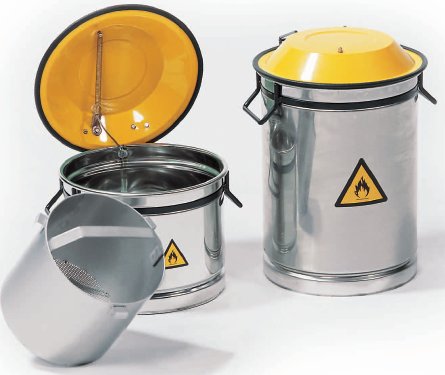 - nerezové nádoby zajišťují zvýšenou odolnost proti agresivním rozpouštědlům - odpružená síťová pracovní miska se samozhášecím zařízením plamene - náhodné rozlití čistící látky minimalizováno - bezpečné uzavření horního víka pomocí bočních zavíračů - zajišťují bezpečné zvlhčování čistících tkanin v hořlavých kapalinách - ideální pro namáčení či ponoření malých pracovních nástrojů nebo součástek - vyrobeny z galvanicky pokoveného ocelového plechu, nebo nerezu - označení bezpečnostním štítkem s výstražnými symboly